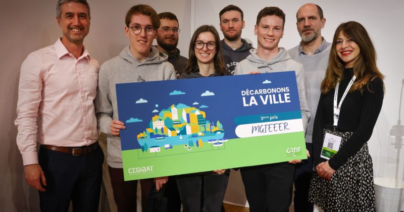 Des étudiants et étudiantes du master Génie Civil de La Rochelle Université ont participé au concours étudiant CEGIBAT « Décarbonons la ville » et ont décroché la 3e place ! Le mardi 6 février s’est déroulée à Paris la journée de l’efficacité énergétique et environnementale du bâtiment 2024 (EnerJMeeting). Chaque année, 500 décideurs et acteurs du monde de la construction et de la rénovation se rencontrent et participent à des échanges sur la réglementation, les tendances du bâtiment, la sobriété, l’efficacité énergétique et la décarbonation. Le concours « Décarbonons la ville » La remise des prix du concours étudiant CEGIBAT « Décarbonons la ville » a eu lieu lors de cette journée unique. Lancé en septembre 2023, ce concours avait pour vocation de faire réfléchir les étudiant·es sur la ville de demain autour des thématiques de l’énergie, de la mobilité et des déchets. Il a rassemblé plus de 500 participant·es avec 118 projets déposés. Le jury était composé de professionnel·les des secteurs de l’énergie et du bâtiment. 5 étudiantes et étudiants du Master Génie civil parcours Ingénierie du bâtiment : gestion et intégration de l’efficacité énergétique et des énergies renouvelables (IB-GI3ER) de La Rochelle Université accèdent à la 3e place. Félicitations à Julie Ravet, Félicien Bricou, Enzo Matano (M2 GI3ER), Maxime d’Arbigny, Ewen Cochard (M1 GI3ER) accompagnés par Clément Dupé (ingénieur GRDF) ! Ils ont reçu leur prix des mains de Sophie Valenti, directrice du Centre d’information de Gaz de France pour l’Industrie et le Bâtiment (CEGIBAT) et de Cédric Beaumont, directeur technique du Comité Scientifique et Technique des Industries Climatiques. Remise du prix aux étudiants et étudiantes de La Rochelle Université