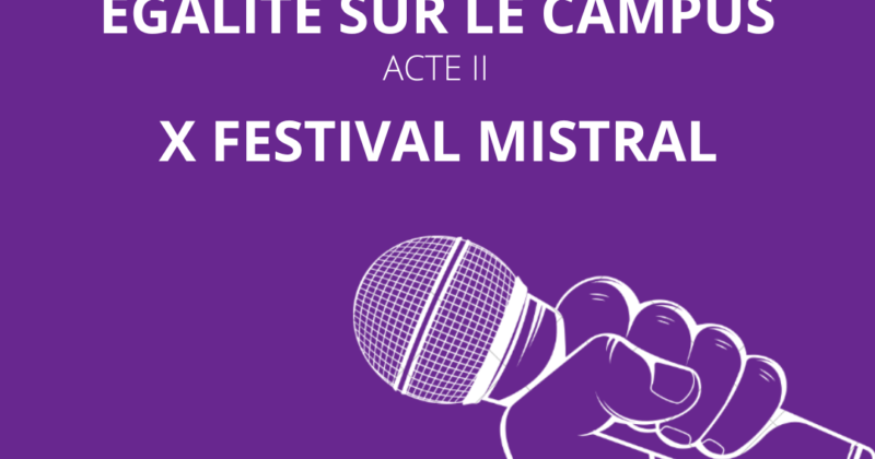 En mars, les étudiantes et étudiants de La Rochelle Université vous proposent de participer à plusieurs événements dans le cadre du projet étudiant Égalité sur le campus. Dans le cadre du projet étudiant Égalité sur le campus et de la politique égalitaire de La Rochelle Université, les étudiantes et étudiants de l’IUT Techniques de commercialisation de la Rochelle ont pu travailler toute l’année sur différentes actions dont l’organisation d’une demi-journée Égalité sur le campus. 9 mars 2023 : Demi-journée Égalité sur le campus 13h15-16h à la Maison de l’Étudiant : Introduction par Jean-Marc Ogier, président de La Rochelle université et Elodie Chazalon, vice-présidente Égalité et qualité de vie au travail Ciné-débat sur le harcèlement à partir de vidéos du festival FestiPREV et échanges avec les partenaires et invités Remise des prix du concours étudiant Égalité sur le campus : présentation des affiches et vidéos lauréates et échanges avec les étudiant·es lauréat·es 16h-18h à la bibliothèque universitaire : Stands et ateliers ludiques autour des services pour les étudiantes et étudiants : AFEV, direction de l’orientation et de l’insertion (mixité des formations, déconstruction des stéréotypes), service de santé universitaire. Expositions dans le hall sur le publisexisme (affiches sur la déconstruction des stéréotypes dans la publicité, créées par les étudiant·es du département Lettres). Un vernissage aura lieu le jour même à 17h30. Anne-Liz Débat sera présente lors de cet événement. Victime d’agression scolaire au collège jusqu’à une tentative d’homicide par ses camarades, Anne-Liz a su s’en sortir et a pu partager sa forte histoire au ministère de l’éducation en novembre 2022. Elle est aujourd’hui devenue intervenante en harcèlement scolaire et a créé un podcast nommé « SMILE » dans lequel elle encourage et aide les élèves face à l’angoisse de l’école et de la rentrée scolaire. 10-12 mars 2023 : Festival MISTRAL MISTRAL (manifestation interculturelle sur le territoire rochelais artistiquement libre), projet porté par 5 étudiantes du master Histoire, parcours Direction de projets ou établissements culturels, met en avant des artistes engagé·es et invite à la découverte et aux échanges. Pendant 3 jours, vous pourrez découvrir : Une conférence en partenariat avec les Rebelles Ordinaires, le vendredi 10 mars. Un spectacle de danse avec des danseurs et danseuses semi-professionnel·les, au Chantier des Francofolies, le samedi 11 mars. Une soirée à la Fabuleuse Cantine composée d’un drag show et d’un set de musique électronique le samedi 11 mars. Une exposition photos spécialement créée pour l’occasion accompagnée d’une immersion sonore aux Cabanes Urbaines, en partenariat avec Le Lieu de Regard, à partir dimanche du 12 mars. Ces événements sont réalisés en partenariat avec des artistes locaux. Pour en savoir plus sur ce festival et le soutenir, cliquez ici. 13 et 14 mars 2023 : Pièce de théâtre « La Honte » La Compagnie Divine Comédie interprètera la pièce de théâtre « La Honte » à 19h à la Maison de l’étudiant. Elle racontera l’histoire d’un professeur d’université et d’une jeune doctorante, entre consentement et harcèlement. Cette pièce est un Hors les Murs du Carré Amelot et est présentée dans le cadre de la politique nationale de lutte contre les violences sexistes et sexuelles dans l’enseignement supérieur et la recherche. Elle s’intègre à la thématique plus générale du consentement, notion phare de cette année via la campagne « Sans oui, c’est interdit. » Billetterie auprès du Carré Amelot : Tarif unique : 8 € / Moins de 18 ans et super Pass’ étudiant : 4,50 € Après la pièce, un bord de plateau (temps privilégié d’échange entre l’équipe artistique et le public à l’issue d’une représentation) sera proposé en présence de la déléguée départementale aux droits des femmes et à l’égalité, de la vice-présidente égalité et qualité de vie au travail de La Rochelle Université, La maison des familles, La Police Nationale. Découvrez le programme complet.
