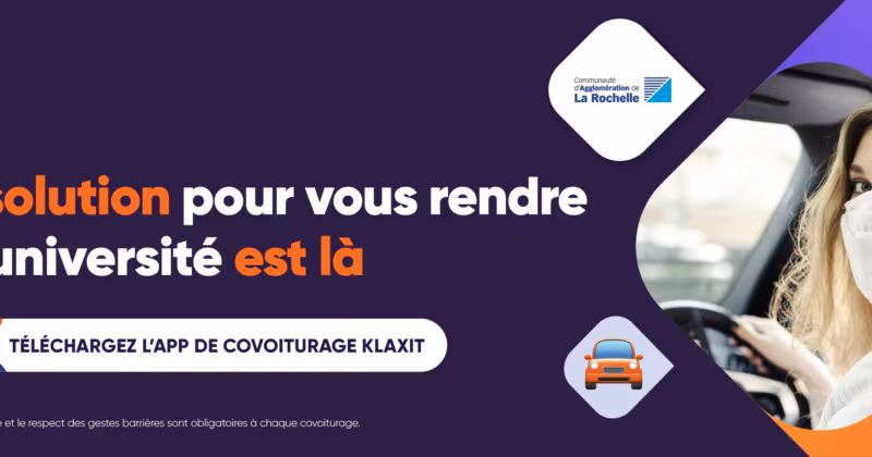 En partenariat avec l’Agglomération de La Rochelle, La Rochelle Université vous propose de tester Klaxit, une application de covoiturage, pour vos déplacements domicile-Université. Une solution à la fois bénéfique pour l’environnement et pour réaliser des économies. Adoptez le covoiturage domicile-Université grâce à des tarifs incitatifs Afin de développer l’offre de mobilités durables sur son territoire, l’Agglomération de La Rochelle a contractualisé un partenariat avec Klaxit, une entreprise française spécialisée dans le covoiturage domicile-travail. Dans le cadre de cette association, les membres du personnel et la communauté étudiante de La Rochelle Université bénéficient de tarifs incitatifs pour utiliser l’application Klaxit. Ce service, qui s’ajoute aux nombreuses solutions de mobilités durables proposées sur le campus, permet non seulement de réduire son impact sur l’environnement mais aussi de diminuer les coûts des déplacements individuels. Ainsi, pour chaque trajet aller-retour, le conducteur ou la conductrice se verra attribuer entre 1€ et 2€ par trajet : Vous réalisez moins de 10 km : vous gagnez 1€/passager/trajet Vous réalisez entre 10 et 20km : vous gagnez entre 1€ et 2€ (0,10€ x nombre de kilomètres parcourus) /passager/trajet Vous réalisez plus de 20km : vous gagnez 2€/passager/trajet Vos gains conducteurs sont désormais plafonnés : vous ne pouvez pas gagner plus de 80€/mois. De son côté, le passager ou la passagère bénéficiera de trajets gratuits, pour des trajets entre 5 et 70 km. Pour les trajets de moins de 5km ou de plus de 70km, vous devrez payer le conducteur ou le conductrice. Des modes de réservation adaptés pour chaque besoin, deux choix sont à votre disposition : Organiser un trajet à l’avance avec d’autres utilisateurs Covoiturer spontanément avec la fonction « partir maintenant » Cette solution de mobilité douce vous intéresse ? N’hésitez pas à télécharger l’application Klaxit ici.