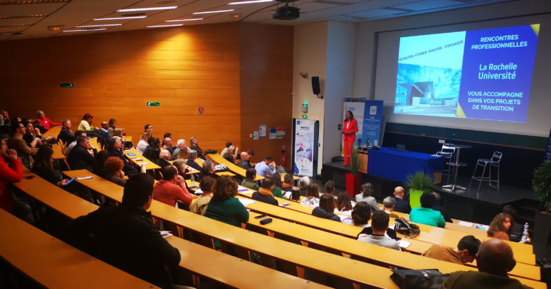 La Rochelle Université a accueilli le 12 mars 2024 des acteurs socio-économiques du territoire régional pour une soirée d’échanges autour de 4 grandes thématiques portées par l’établissement : recruter, former, innover et s’engager. Retour sur un évènement dédié aux acteurs socio-économiques Près de 100 professionnel·les étaient présent·es lors de cette soirée riche en échanges ! Des chefs d’entreprises, des responsables ressources humaines et des experts ont témoigné auprès de leurs pairs de leur collaboration avec La Rochelle Université : David Sauzeau, analyste spécialisé recrutement et trajectoires professionnelles du Crédit Agricole, a témoigné de son expérience à travers le recrutement de stagiaires de l’Université, notamment par le biais du Career Center. Olivier Bollengier, directeur des ressources humaines des établissements Tremä, nous a parlé des différentes formations effectuées avec l’Université pour répondre aux besoins de Tremä, notamment pour former ses RH et ses managers via les prestations de formations sur mesure. Par le biais du LaSIE, le Laboratoire des Sciences de l’Ingénieur pour l’Environnement ou encore via Ferrocampus, Christian Boneill, « Innovation Champion » au sein du Groupe Alstom a pu s’appuyer sur les compétences de l’Université pour des projets de recherche et d’innovation sur des thématiques diverses : confort thermique des passagers en tramway, consommation énergétique, mineure du ferroviaire… Sarah Boursier, responsable mission communication du Port Atlantique de La Rochelle, partenaire et vice-présidente de la Fondation La Rochelle Université, nous a évoqué l’importance de soutenir la Fondation : dynamisation du territoire, donner une voix aux entreprises, mener des projets et des actions qui contribuent à la société… La Rochelle Université, partenaire de vos transitions Recruter, former, innover et s’engager ! À travers ces 4 grandes thématiques, l’Université se positionne sur le territoire comme un contributeur de l’ascenseur social, en proposant aux acteurs économiques une offre de service répondant à leurs besoins actuels et futurs. L’objectif est de mettre au service des entreprises et des collectivités toute l’expertise et les compétences que l’Université propose afin de créer des collaborations et de tisser des liens durables. Cet évènement du 12 mars fait notamment écho au projet Excellr’h, dans le cadre de l’appel à projets « Accélération des stratégies de développement des établissements d’enseignement supérieur et de recherche », dont La Rochelle Université fait partie des lauréats. Parmi les volets concernés, la formation professionnelle joue un rôle central. En recrutant ainsi 7 nouveaux postes, la direction du développement de la formation professionnelle, de l’alternance et des relations socio-économiques prévoit de développer une offre de formation continue autour de 4 grandes thématiques : le littoral, la transition environnementale, la transition numérique et l’innovation. Pour répondre aux enjeux de demain, La Rochelle Université accompagne les acteurs socio-économiques dans tous leurs projets en rapprochant l’univers de la recherche avec celle du monde professionnel. Vous avez des besoins de formation ? Contactez-nous pour plus d’informations.