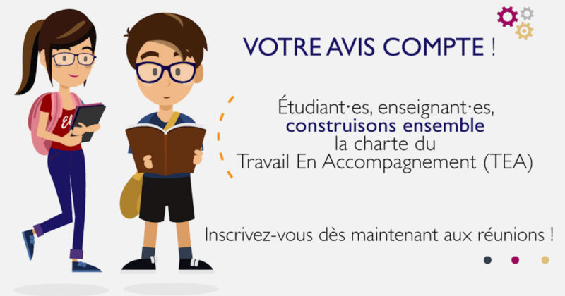 Date : 26 avril 2018 Horaire : 15h Lieu : Pôle Communication, Multimédia et Réseaux Le Travail En Accompagnement (TEA) est un dispositif de pédagogie active pensé pour favoriser le développement des compétences : venez apporter votre pierre à l'édifice ! En savoir +