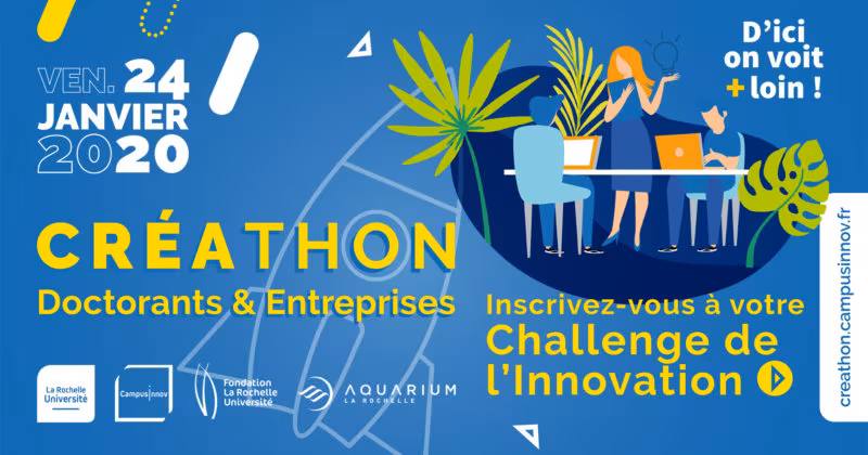 Créathon à La Rochelle Université La Rochelle Université > L’Université > Espace Presse > Communiqués de presse de La Rochelle Université > 2020 > Créathon à La Rochelle Université Mis à jour le 19 mai 2025 La Rochelle Université au travers de sa Fondation et du dispositif CampusInnov organise un créathon, vendredi 24 janvier de 8h à 18h dans les nouveaux espaces d’innovation de la Bibliothèque universitaire. L’Aquarium est cette année le partenaire de ce « marathon » de la créativité, mis au service de l’innovation. Et c’est Mathieu Coutant, Directeur Général, qui livrera aux participants le sujet de cette édition. A ce stade, la problématique est encore confidentielle, seuls quelques mots clés ont filtré : #énergie #biomasse #matériaux #communication #bâtiment Le principe du Créathon Une dizaine de doctorantes et doctorants de toute discipline sont rassemblés en équipes pendant 24h autour d’un défi. Le challenge consiste à livrer des solutions créatives et innovantes sur le sujet complexe qui leur est soumis. Un temps limité, des profils étudiants diversifiés, une ambiance stimulante mais décontractée, une préparation en amont pour acquérir les techniques de la créativité : voici la recette d’un challenge qui a déjà fait ses preuves lors des éditions précédentes. En effet le Créathon, c’est : pour les doctorants, une belle opportunité de se mettre dans des conditions d’entreprise, et d’acquérir les bons réflexes de la résolution de problèmes par la créativité, pour l’Université, une voie originale pour susciter l’acquisition des méthodes de travail en équipe et amener des doctorants à valider des compétences transversales, et enfin pour le partenaire, une opportunité de recueillir un regard neuf sur une problématique qui lui tient à cœur, avec des pistes de solutions à la clé. La soirée de clôture est ouverte à tous Les doctorants seront face au partenaire et au jury pour livrer le fruit de leurs travaux. L’équipe jugée la meilleure, tant sur la qualité des solutions proposées que sur la présentation réalisée, sera primée. La présentation des solutions est ouverte à tous, sur inscription. Enfin, un cocktail convivial terminera cette intense journée. Rendez-vous vendredi 24 janvier à 18h, Au RdC de la Bibliothèque Universitaire, parvis Fernand Braudel Pour vous inscrire, suivez ce lien Attention, le nombre de places est limité. Contact Isabelle Pairé, Déléguée générale de la Fondation La Rochelle Université : 05 46 49 67 01/06 58 60 51 86 Plus d’informations Documents à télécharger Communiqué de presse du 22 janvier 2020 Dans cette rubrique Communiqué du Président de La Rochelle Université Premières Journées séminaires du réseau BIOSENA les 2 et 3 novembre Élections à La Rochelle Université La Rochelle Université adapte son activité en plein confinement Les Rencontres Pro de La Rochelle Université auront lieu en ligne les 18 et 19 novembre La Rochelle Université et CampusInnov organisent la Matinale de l’Innovation Lancement des mineures EU-CONEXUS à La Rochelle Université La Rochelle Université accueille la cérémonie régionale du Prix PEPITE 2020 le 15 octobre prochain Le laboratoire commun RUPEE LAB ouvre ses portes Virginie Duvat reçoit l’insigne de Chevalier de la Légion d’honneur La Rochelle Université et l’INR lancent le MOOC Numérique Responsable La Rochelle Université coordonne la Fête de la Science Deux opérations de solidarité menées par la Fondation La Rochelle Université La Rochelle Université – Jean-Marc Ogier reçoit l’insigne de Chevalier dans l’Ordre National du Mérite La Rochelle Université adapte l’accueil de ses étudiant·es dans le contexte COVID-19 Lancement de l’application Géoluciole – La Rochelle Université réalise une enquête sur les pratiques touristiques La Rochelle Université prend des nouvelles de ses étudiant·es EU-CONEXUS fait le bilan de sa première année La Rochelle Université et l’INR présentent le module « Sensibilisation au numérique responsable » La SATT Aquitaine Science Transfert investit 300 k€ dans la maturation de 3 nouveaux projets issus de La Rochelle Université Continuité pédagogique rime avec solidarité numérique La Rochelle Université au plus près de ses étudiantes et étudiants en confinement La Rochelle Université reste entièrement mobilisée pendant le confinement La Rochelle Université organise un colloque sur « L’irresponsabilité pénale en questions » 11 doctorantes et doctorants rochelais en lice pour le Concours MT 180 4ev lab, La Rochelle Université, le CNRS et EDF renouvellent leur partenariat La Rochelle Université et CNRS, renforcement des actions communes et ouverture à l’international Une meilleure estimation de la montée des eaux dans le delta du Gange Créathon à La Rochelle Université Contact Direction de la Communication +33 (0)5 46 45 85 68 Envoyer un message Du lundi au vendredi de 9h à 12h30 et de 14h à 17h30