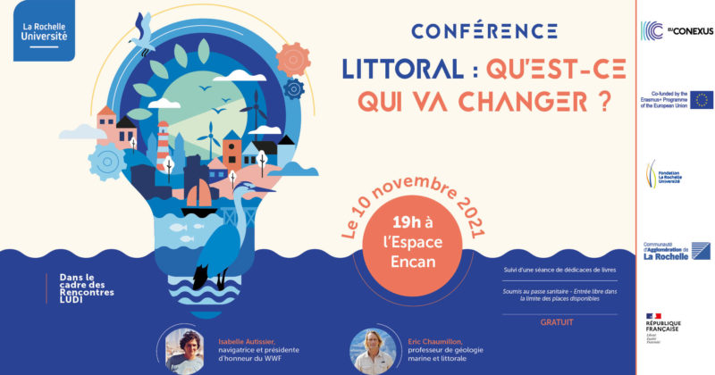 Conférence sur l’évolution du littoral avec Isabelle Autissier et Éric Chaumillon La Rochelle Université > L’Université > Espace Presse > Communiqués de presse de La Rochelle Université > 2021 > Conférence sur l’évolution du littoral avec Isabelle Autissier et Éric Chaumillon Publié le 5 novembre 2021 Dans le cadre des Rencontres du Littoral Urbain Durable Intelligent, La Rochelle Université organise une conférence sur le thème « Littoral : qu’est-ce qui va changer ? ». Animée par Isabelle Autissier et Éric Chaumillon, elle se tiendra mercredi 10 novembre 2021 à 19h à l’Espace Encan. Les Rencontres du Littoral Urbain Durable Intelligent sont un événement organisé par La Rochelle Université en coopération avec sa Fondation et EU-CONEXUS, l’Université Européenne qu’elle coordonne. Du 8 au 12 novembre 2021, les partenaires socio-économiques des 9 universités et les membres de l’alliance européenne se retrouvent pour échanger sur les innovations au service du développement des territoires côtiers. Ces rencontres sont l’occasion de sensibiliser le grand public aux problématiques engendrées par le changement climatique sur nos côtes. Une conférence est ainsi organisée le mercredi 10 novembre à 19h à l’Espace Encan. Isabelle Autissier, navigatrice et présidente d’honneur du WWF, et Éric Chaumillon, professeur de géologie marine et littorale, aborderont le thème « Littoral : qu’est-ce qui va changer ? ». La conférence prendra la forme d’une réflexion sur les 100 dernières années à propos du changement climatique, de l’effondrement de la biodiversité et des littoraux. Échange complémentaire entre deux visions, « climat et biodiversité » et « climat et littoraux », la conférence égrènera des événements marquants afin de mieux situer et entrevoir vers quoi nous nous dirigeons en matière d’adaptation au changement climatique dans les zones littorales. Au fil des générations silencieuses, X, Y, Z, Alpha, Isabelle Autissier et Éric Chaumillon analyseront comment le réchauffement climatique a impacté et impacte encore la zone littorale, mais également comment ces problématiques environnementales ont été et sont prises en compte par les pouvoirs publics et les citoyens. La confrontation de ces deux regards sur les 100 dernières années vise à stimuler la réflexion, entrevoir des solutions, mais aussi et surtout à nourrir le débat qui s’en suivra avec le public. La conférence sera suivie d’une séance de dédicaces des deux intervenants pour leurs livres : – « Notre avenir s’écrit dans l’Océan » pour Isabelle Autissier – « Hé la mer monte » et « La mer contre-attaque » pour Éric Chaumillon. L’accès à la conférence est soumis à la présentation du passe sanitaire. L’événement est gratuit et libre dans la limite des places disponibles. Plus d’information sur les Rencontres LUDI Consulter le communiqué de presse des Rencontres LUDI Documents à télécharger Communiqué de presse du 8 novembre 2021 Dans cette rubrique La Rochelle Université et La Sirène signent une convention de partenariat Lauréate de l’appel à projets Excellences sous toutes ses formes, La Rochelle Université obtient 16 M€ Le président et le rapporteur de la mission sénatoriale sur les conditions de vie étudiante à La Rochelle Université le 29 novembre LANCEMENT D’UN DISPOSITIF INNOVANT DE LUTTE CONTRE LES VIOLENCES SEXUELLES ET SEXISTES La Rochelle Université se mobilise pour la professionnalisation des étudiant·es et zoome sur la RSE La Rochelle Université accueille un colloque sur la performance artistique dans les Amériques Conférence sur l’évolution du littoral avec Isabelle Autissier et Éric Chaumillon LA ROCHELLE UNIVERSITÉ / VALBIOTIS, une Keynote pour célébrer une collaboration réussie Rencontres LUDI, une 3<sup>e</sup> édition européenne La Rochelle Université lauréate de l’AMI national sur les démonstrateurs numériques – « Rendre l’université accessible en tout lieu et à toute heure » La Fête de la Science bat son plein ! La Fête de la Science fête ses 30 ans Crazy Street, une journée pour entrer dans l’art et la culture à La Rochelle Université La Rochelle Université s’engage pour la transition socio-écologique Élections du 1<sup>er</sup> directeur de l’Institut du Littoral Urbain Durable Intelligent de La Rochelle Université Un nouveau partenariat avec le groupement de gendarmerie départementale Nouveautés et perspectives à la Fondation La Rochelle Université Les Étudiants-Entrepreneurs à l’honneur La Rochelle Université, en collaboration avec EU-CONEXUS, organise les Smart Urban Coastal Sustainability Days La Rochelle Université et le CNRS participent à la lutte contre l’échouage des dauphins Du 6 au 11 avril 2021, Édition spéciale en ligne du Festival « Les étudiants à l’affiche » La Rochelle Université propose une formation diplômante pour étudier la biodiversité sous-marine du littoral méditerranéen « Ma thèse en 180 secondes » : Finale régionale du regroupement des universités de Bordeaux – Bordeaux Montaigne – La Rochelle – Pau, le 18 mars 2021 Cap sur l’Europe avec les formations en anglais EU-CONEXUS Pour la 1<sup>re</sup> fois, la Journée Portes Ouvertes sera virtuelle Un nouveau mandat pour le Président de l’Université Contact Direction de la Communication +33 (0)5 46 45 85 68 Envoyer un message Du lundi au vendredi de 9h à 12h30 et de 14h à 17h30