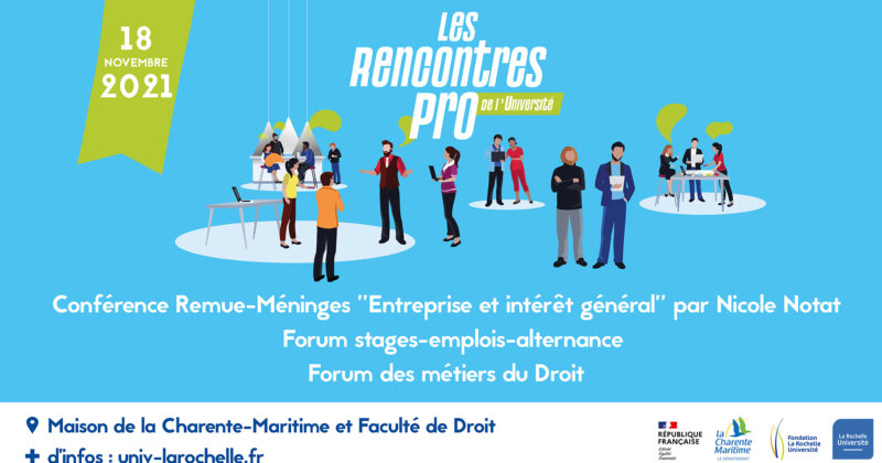 La Rochelle Université se mobilise pour la professionnalisation des étudiant·es et zoome sur la RSE La Rochelle Université > L’Université > Espace Presse > Communiqués de presse de La Rochelle Université > 2021 > La Rochelle Université se mobilise pour la professionnalisation des étudiant·es et zoome sur la RSE Mis à jour le 18 novembre 2021 Le 18 novembre 2021, la Rochelle Université et sa Fondation organisent Les Rencontres Pro. Après une édition 2020 réalisée totalement en distanciel pour cause de crise sanitaire, c’est avec plaisir que cette manifestation retrouve des conditions de présentiel pour un Forum Stages-Emplois-Alternance à la Maison de la Charente-Maritime, et une Conférence Remue-Méninges de Nicole Notat. Organisé chaque année au mois de novembre, ce grand rendez-vous « Les Rencontres Pro » favorise les rencontres entre le monde socio-économique et universitaire, l’insertion professionnelle des étudiantes et des étudiants et le rayonnement de l’Université sur le territoire. Le Forum stages-emplois-alternance – 9h à 16h30 en présentiel à la Maison de la Charente Maritime, et pour partie à distance La période actuelle confronte les acteurs socio-économiques à des besoins importants en matière de ressources humaines. Il est donc tout à fait opportun que les étudiantes, les étudiants et les jeunes diplômé·es soient en mesure de valoriser leurs compétences. Le Forum stages-emplois-alternance organise chaque année la rencontre et les échanges entre entreprises, collectivités publiques, associations d’une part et étudiant·es, jeunes diplômé·es d’autre part. Compte-tenu des règles sanitaires en vigueur limitant le nombre de stands d’entreprises à 27, les acteurs socio-économiques se sont vu offrir la possibilité de stands en distanciel : 9 d’entre eux ont choisi cette formule. Les exposants : Acadomia, Crédit Agricole, Metro, Port Atlantique La Rochelle, Domicil + Amelis, Rtcr, Groupe Briand, La Rochelle Technopole, Hays, Lifesize, McDonalds, Conexio, CPAM, Juritravail, Groupe Ridoret, Centre de gestion 17, Département de la Charente Maritime, Auberge de Jeunesse, Maison et Services, Groupement de Gendarmerie, Keypup, Inteum, Locatiers, Camif-Matelsom, Direction générale des finances publiques, Locatiers, Direction de l’alternance de La Rochelle Université, Surgères Drive restaurant Les entreprises à distance : Atout jeunes universités, Cerfrance Poitou-Charentes, Ecf Cerca, Irium Software, KPMG, Odalys, Tenzing, Yelloh Village les grands pins Des stands thématiques : retours d’expérience, rencontres et échanges métiers, astuces candidatures Pour les métiers du droit : un pôle rencontre avec les professionnels des métiers du droit particulier se tient à la Faculté de Droit, de Science politique et de Management de 13h à 16h La Conférence Remue-Méninges Entreprise et intérêt général de Nicole Notat à 17h, Amphi Valin de la Faculté de Droit, de Science politique et de Management La conférence de Nicole Notat prévue initialement en novembre 2020 avait dû être annulée pour cause de confinement. La Fondation se réjouit donc de reprogrammer cette conférence le 18 novembre 2021. Pour cette 12e édition des Remue-Méninges de la Fondation et dans la succession des conférenciers prestigieux qui l’ont précédée, c’est Nicole Notat qui viendra partager son expertise sur la Responsabilité sociétale des entreprises. Le thème choisi : « Entreprise et Intérêt général » lui donnera l’occasion de revenir sur le rapport « L’entreprise, objet d’intérêt collectif » réalisé avec Jean-Dominique Senard, Président du Conseil d’Administration de Renault Group. Il s’agira aussi de mettre en perspective la notion de responsabilité sociétale des entreprises avec les bouleversements induits par la crise sanitaire et les grands enjeux sociaux et environnementaux du moment. Nicole Notat a remis ce rapport sur le rôle de l’entreprise dans la société française en 2018 aux Ministres de la Transition écologique, de la Justice, de l’Economie et du Travail. Figure du monde syndical, Nicole Notat a été Secrétaire générale de la CFDT de 1992 à 2002, puis présidente de Vigeo Eiris, société européenne d’évaluation des performances sociales et environnementales des entreprises. Elle a été membre du groupe de réflexion sur l’avenir de l’Europe présidé par Felipe Gonzalez, et en 2020, s’est vu confier la direction du Ségur de la Santé. Informations pratiques En savoir plus sur le programme Pour les demandes d’interview, contacter Aude Couteau au 06 48 22 74 26 Documents à télécharger Communiqué de presse du 17 novembre 2021 Dans cette rubrique La Rochelle Université et La Sirène signent une convention de partenariat Lauréate de l’appel à projets Excellences sous toutes ses formes, La Rochelle Université obtient 16 M€ Le président et le rapporteur de la mission sénatoriale sur les conditions de vie étudiante à La Rochelle Université le 29 novembre LANCEMENT D’UN DISPOSITIF INNOVANT DE LUTTE CONTRE LES VIOLENCES SEXUELLES ET SEXISTES La Rochelle Université se mobilise pour la professionnalisation des étudiant·es et zoome sur la RSE La Rochelle Université accueille un colloque sur la performance artistique dans les Amériques Conférence sur l’évolution du littoral avec Isabelle Autissier et Éric Chaumillon LA ROCHELLE UNIVERSITÉ / VALBIOTIS, une Keynote pour célébrer une collaboration réussie Rencontres LUDI, une 3<sup>e</sup> édition européenne La Rochelle Université lauréate de l’AMI national sur les démonstrateurs numériques – « Rendre l’université accessible en tout lieu et à toute heure » La Fête de la Science bat son plein ! La Fête de la Science fête ses 30 ans Crazy Street, une journée pour entrer dans l’art et la culture à La Rochelle Université La Rochelle Université s’engage po