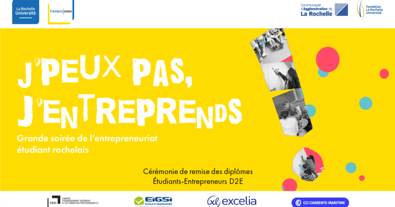 « J’peux pas, j’entreprends ! », une journée pour mettre en lumière l’entrepreneuriat étudiant La Rochelle Université > L’Université > Espace Presse > Communiqués de presse de La Rochelle Université > 2022 > « J’peux pas, j’entreprends ! », une journée pour mettre en lumière l’entrepreneuriat étudiant Publié le 14 juin 2022 CampusInnov, catalyseur de l’innovation et de l’entrepreneuriat de La Rochelle Université, organise le 16 juin une journée pour célébrer les projets des étudiant·es qui se lancent dans l’aventure entrepreneuriale. Un programme chargé, entre les challenges du Pitch me up et la grande soirée de remise de diplômes et de prix à La Sirène. Pitch me up, une matinée pleine de challenges Qu’est-ce que le Pitch me up ? C’est une matinée réservée aux étudiants-entrepreneurs qui n’ont pas peur de se frotter à l’exercice périlleux du pitch ! En deux épreuves, ils devront montrer l’étendue de leur éloquence, travaillée tout au long de l’année. Le but de ces exercices est de leur permettre de délivrer des présentations percutantes et accrocheuses, un plus non négligeable pour un ou une entrepreneuse. CampusInnov n’a pas peur de faire sortir les étudiantes et les étudiants de leur zone de confort, puisque leur première épreuve, « Pitch ta patate », les amènera à aller à la rencontre d’inconnus pour troquer une pomme de terre contre des objets de plus grande valeur. L’adaptabilité et la créativité sont les maîtres mots de ce challenge ludique ! Une soirée pour célébrer les accomplissements « J’peux pas, j’entreprends !» se clôture en beauté avec une grande soirée à La Sirène célébrant la dernière promotion des étudiantes et étudiants ayant participé au D2E, le diplôme des étudiants-entrepreneurs. À l’affiche, 18 personnes pour 15 projets tous très différents, allant du vélo en plastique recyclé de Vélostic au développement des créations de Ohlala du chocolat, alliant chocolat et économie circulaire, en passant par le projet Fintech de BBOXA. C’est tout l’écosystème de l’entrepreneuriat local qui est invité à découvrir ces projets, autour d’une présentation d’affiches en mode demoday, puis en pitch sur scène. Les 3 projets les plus ambitieux se verront remettre des prix par le Lions Club Pernelle Auffredy et la Banque Populaire, partenaires de la Fondation La Rochelle Université, ainsi que par CampusInnov. CampusInnov a pour volonté de faire de « J’peux pas, j’entreprends ! » un rendez-vous annuel incontournable, une occasion inédite de découvrir en avant-première les projets ambitieux des étudiants rochelais. Pour Michael Gouin, directeur de CampusInnov, « cette soirée de remise de prix et de diplômes est avant tout l’opportunité pour nos étudiant·es de présenter et de confronter leur projet à l’ensemble de l’écosystème rochelais. D’année en année, nos « pépites » rochelaises portent des projets de plus en plus ambitieux, nécessitant un engagement de tous les instants et bien souvent en parallèle de leurs études. Ce moment de clôture vient récompenser les efforts et l’implication dont ils ont fait preuve tout au long de l’année universitaire. » L’entrepreneuriat étudiant rochelais a de beaux jours devant lui et cette cérémonie est également l’occasion d’annoncer la marraine de la prochaine promotion en la personne d’Amandine Merling, directrice générale du groupe Merling. Entreprendre ? Il n’y a pas d’âge ! Chaque année, de plus en plus d’étudiantes et d’étudiants rochelais poussent la porte du service CampusInnov de La Rochelle Université avec pour objectif de lancer leur association, une idée d’entreprise, une envie de se confronter à la création. Ils rejoignent alors le réseau Pépite grâce au Statut National Étudiant-Entrepreneur, initiative nationale du Ministère de l’Enseignement supérieur et de la Recherche. Cette année, ce sont 65 étudiantes et étudiants de La Rochelle Université mais aussi du Cesi, de l’EIGSI et d’Excelia qui ont pu bénéficier de cet accompagnement d’expert·es. Ces actions en faveur de l’entrepreneuriat étudiant sont soutenues par la Communauté d’agglomération de La Rochelle. Contactez CampusInnov par mail, ou par téléphone : 07 60 92 71 98 Documents à télécharger Communiqué de presse du 14 juin 2022 Dans cette rubrique Deux étudiant·es de La Rochelle Université engagés pour la biodiversité à la COP15 de Montréal Portes ouvertes au Centre d’Études Biologiques de Chizé Agression de l’Ukraine par la Russie : conséquences pour l’environnement – Solidarité écologique et conflits armés Retour du concours européen « Think Smart, Create Green » Rencontres LUDI, 4<sup>e</sup> édition ! Chaire « Aménagement du littoral », La Rochelle Université et le Fonds de Dotation CAUE signent une convention La Rochelle Université labellisée « Développement durable & responsabilité sociétale » EU-CONEXUS, l’Université Européenne pilotée par La Rochelle Université participe au « Campus des universités européennes » impulsé par le Président Macron « J’peux pas, j’entreprends ! », une journée pour mettre en lumière l’entrepreneuriat étudiant Des bourses pour s’inscrire à la 1<sup>re</sup> formation en master de l’Université Européenne EU-CONEXUS Survol des eaux européennes à venir pour recenser baleines et dauphins à La Rochelle Le rôle du numérique dans la valorisation des produits alimentaires locaux Histoire à succès : Arthur Constancin, ancien étudiant-entrepreneur de La Rochelle Université La Rochelle Université classée 2<sup>e</sup> par L’Étudiant pour la réussite en master Les événements hydrométéorologiques extrêmes, un défi pour les réseaux gravimétriques et sismologiques Des collégiennes de Montguyon (17) en finale du concours européen