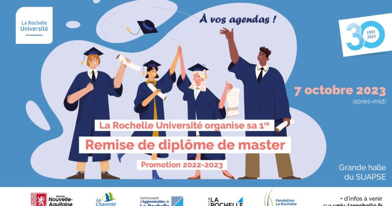 Pour la 1re fois, à l’occasion de son 30e anniversaire, La Rochelle Université organise une cérémonie de remise de diplôme de master à l’échelle de l’établissement. Toutes et tous les promu·es de l’année 2022-2023 se verront remettre leur diplôme ce samedi 7 octobre, dans la grande halle du SUAPSE.