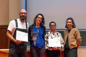 Le NANOmusée lauréat du France Design Impact Award La Rochelle Université > L’Université > Espace Presse > Communiqués de presse de La Rochelle Université > 2025 > Le NANOmusée lauréat du France Design Impact Award Mis à jour le 7 octobre 2025 Le NANOmusée, musée itinérant de La Rochelle Université, a remporté mi-septembre le prix de la médiation dans le cadre du France Design Impact Award. Ce prix met à l’honneur des projets innovants ayant un impact positif sur la société, l’environnement et l’économie. La cérémonie de remise des prix s’est tenue à Paris dans le cadre de la France Design Week. Elle a mis en lumière le rôle essentiel du design dans notre quotidien et son influence sur nos usages. Le concours s’adressait à un large éventail d’acteurs : entreprises, start-up, designers, établissements d’enseignement, collectivités et structures publiques. En juillet dernier, un jury d’experts avait sélectionné 40 projets finalistes pour leur capacité à incarner les ambitions du design à travers des initiatives concrètes, responsables et créatives. Parmi eux, 13 lauréats ont été désignés par un grand jury présidé par le designer Mathieu Lehanneur, créateur de la vasque des Jeux Olympiques. Le NANOmusée s’est distingué dans la catégorie Impact en faveur des transitions, en recevant le prix de la médiation. Une délégation composée de Félix associés, concepteurs du design du NANOmusée, et de représentants de La Rochelle Université était présente pour recevoir ce prix. Né en 2022 d’une idée originale de Diego Jarak, maître de conférences à La Rochelle Université, le projet a été développé grâce au financement du label Science avec et pour la société (SAPS) du Ministère de l’Enseignement supérieur et de la Recherche. Les lauréats et finalistes profitent d’une large visibilité tant sur le plan national qu’international grâce à une exposition itinérante présentée à Nantes, Rennes, Paris et Strasbourg, ainsi qu’à la mise en avant des 40 projets dans un catalogue numérique diffusé sur France Design Hub. Poursuivant son déploiement sur le territoire, le NANOmusée, qui possèdent différents modules, est actuellement présenté à la médiathèque de Surgères (jusqu’au 16 octobre) et à la médiathèque Michel-Crépeau à La Rochelle (jusqu’au 31 octobre). Suivez le NANOmusée ! Documents à télécharger Communiqué de presse du 7 octobre 2025 Contact Direction de la Communication +33 (0)5 46 45 85 68 Envoyer un message Du lundi au vendredi de 9h à 12h30 et de 14h à 17h30