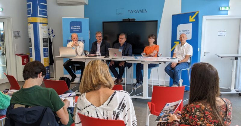 Conférence de presse de rentrée 2023-2024 La Rochelle Université > L’Université > Espace Presse > Dossiers de presse de La Rochelle Université > Conférence de presse de rentrée 2023-2024 Mis à jour le 26 septembre 2024 Mardi 19 septembre 2023 s’est tenue la conférence de presse de rentrée. Jean-Marc Ogier et toute l’équipe présidentielle ont pu évoquer l’avancée des grands projets en cours à l’Université. Jean-Marc Ogier, Président de La Rochelle Université, a tout d’abord présenté trois faits marquants de la rentrée : la finalisation de l’organisation de l’établissement – la Faculté de Droit a intégré l’Institut Littoral Urbain Intelligent, la création d’un conseil d’orientation stratégique, qui ouvre la gouvernance à des personnalités extérieures, le nouveau partenariat avec le conseil départemental. Ensuite, le Président a évoqué les premières tendances en termes d’effectif. L’avancement des grands projets de transformation a été exposé avec notamment l’évolution des bâtiments (nouveaux ou rénovés), les nouvelles Smart Rooms pour une Université à la demande, le bilan des 4 années de l’Université Européenne EU-CONEXUS… L’année 2023, a permis a l’Université de fêter ses 30 ans au travers de multiples événements et certains auront encore lieu d’ici la fin de l’année avec la soirée de gala de clôture qui se déroulera le 28 novembre. Documents à télécharger Dossier de presse de rentrée 2023-2024 Dans cette rubrique Conférence de presse de rentrée 2024-2025 Dossier de presse – Lancement CAPéMARE Conférence de presse de rentrée 2025-2026 Conférence de presse de rentrée 2023-2024 Conférence de presse de rentrée 2022-2023 Conférence de presse de rentrée 2021-2022 Conférence de presse de rentrée 2019-2020 Conférence de presse d’ouverture des 2<sup>e</sup> Rencontres Littoral Urbain Durable Intelligent Conférence de presse sur les Grands projets de l’Université Visite de la Ministre de l’Enseignement supérieur, de la Recherche et de l’Innovation Conférence de presse de rentrée – 2017/2018 Contact Direction de la Communication +33 (0)5 46 45 85 68 Envoyer un message Du lundi au vendredi de 9h à 12h30 et de 14h à 17h30