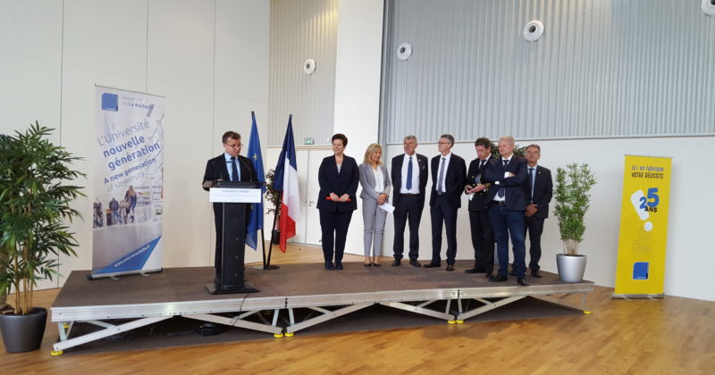 Visite de la Ministre de l’Enseignement supérieur, de la Recherche et de l’Innovation La Rochelle Université > L’Université > Espace Presse > Dossiers de presse de La Rochelle Université > Visite de la Ministre de l’Enseignement supérieur, de la Recherche et de l’Innovation Mis à jour le 12 décembre 2018 L’Université fête cette année ses 25 ans ! A cette occasion, Frédérique Vidal, Ministre de l’Enseignement supérieur, de la Recherche et de l’Innovation inaugurera la nouvelle Halle des sports de l’Université de La Rochelle, le lundi 11 juin à 10h30. L’Université de La Rochelle a toujours considéré les activités physiques et sportives comme un moyen fort et tangible d’épanouissement et de développement de la personnalité de l’étudiant. L’établissement place la qualité de la vie étudiante comme un facteur de la réussite universitaire. Le Service Universitaire des Activités Physiques Sportives et d’Expression n’a cessé de croître tant en nombre d’activités proposées, que de créneaux de pratiques ou d’étudiants inscrits. Depuis fin novembre 2017, les étudiants et personnels de l’Université profite désormais d’une nouvelle Halle des sports de 4 000 m². Cette infrastructure proche du périmètre des lieux d’enseignement et de vie étudiante comprend une grande salle pour les sports collectifs et de raquettes, une salle de musculation, un dojo et une salle de danse, un atelier à bateaux. Le bâtiment est financé par : l’état, la Région, le département, la Communauté d’Agglomération de La Rochelle, la ville de la Rochelle. Inauguration Lundi 11 juin à 10h30 Avenue de la Rotonde – 17440 Aytré Documents à télécharger Dossier de presse Inauguration de la nouvelle Halle des sports - 11 juin 2018 Dans cette rubrique Conférence de presse de rentrée 2024-2025 Dossier de presse – Lancement CAPéMARE Conférence de presse de rentrée 2025-2026 Conférence de presse de rentrée 2023-2024 Conférence de presse de rentrée 2022-2023 Conférence de presse de rentrée 2021-2022 Conférence de presse de rentrée 2019-2020 Conférence de presse d’ouverture des 2<sup>e</sup> Rencontres Littoral Urbain Durable Intelligent Conférence de presse sur les Grands projets de l’Université Visite de la Ministre de l’Enseignement supérieur, de la Recherche et de l’Innovation Conférence de presse de rentrée – 2017/2018 Contact Direction de la Communication +33 (0)5 46 45 85 68 Envoyer un message Du lundi au vendredi de 9h à 12h30 et de 14h à 17h30